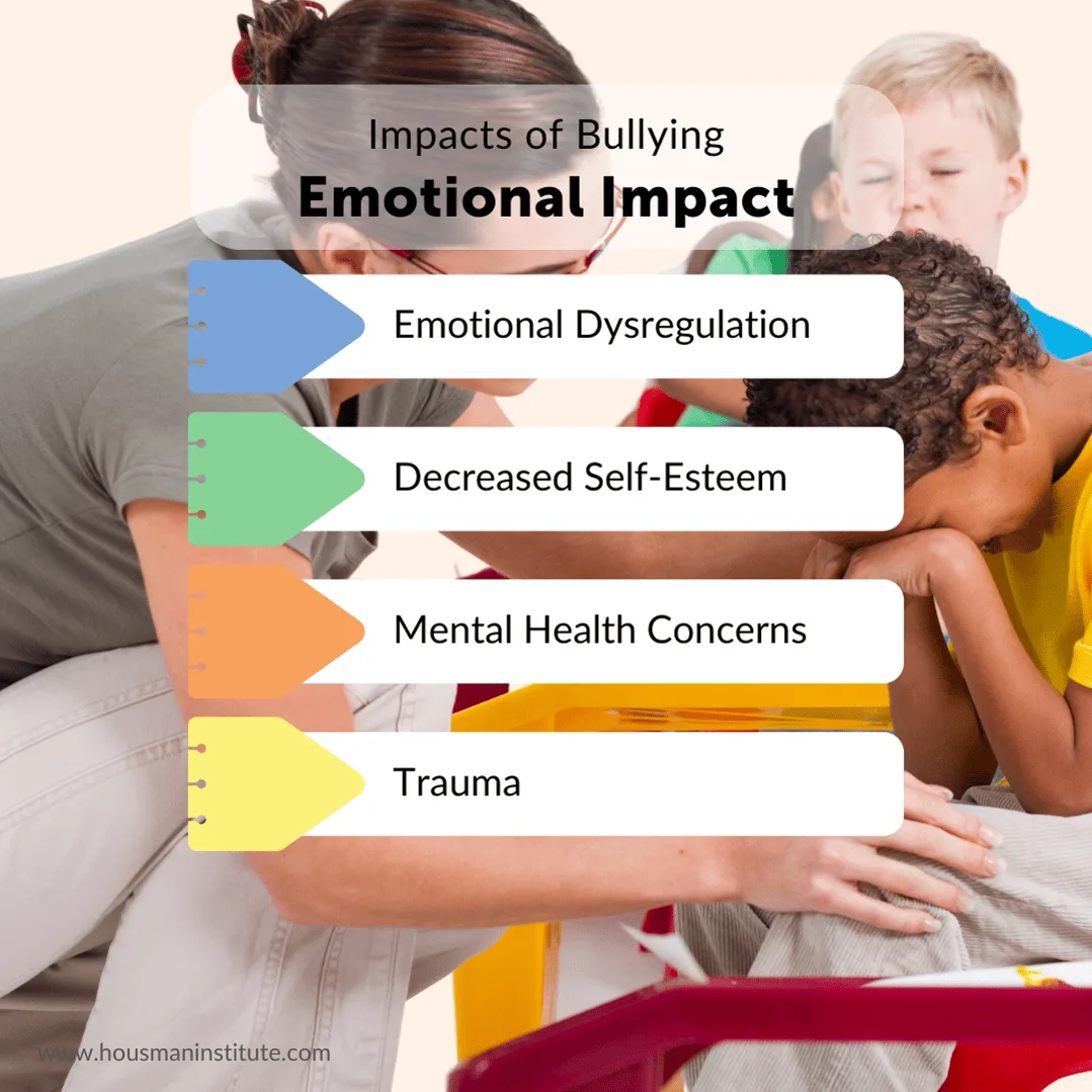 Emotional Dysregulation: Children who experience bullying may struggle with managing their emotions, stress, and behaviors, impacting their development of coping and resiliency skills.