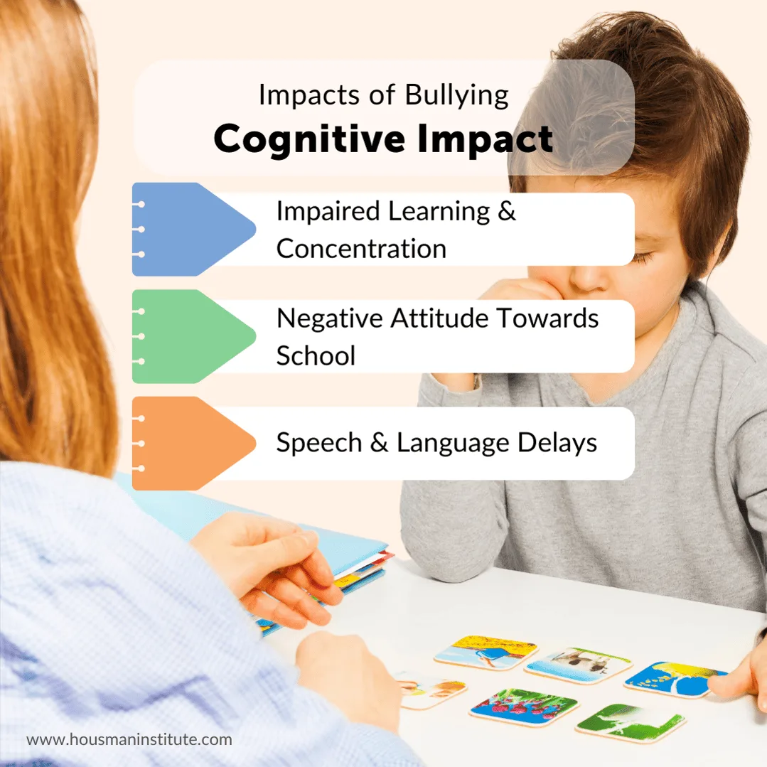 Impaired Learning and Concentration: When the stress and anxiety from bullying is left unmanaged, children cannot access the executive function skills necessary for learning, preventing learning and academic achievement.